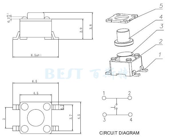 (1)輕觸開關(guān)TS-1111C